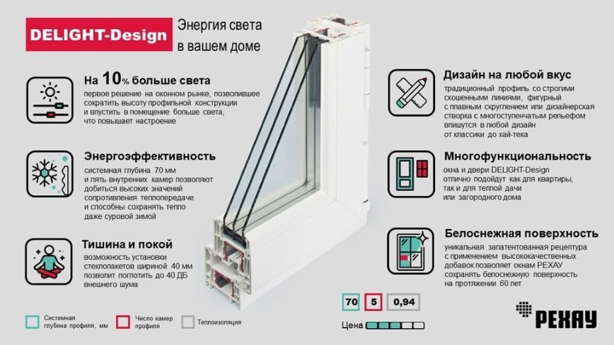 Высочайшая надёжность всех элементов — от основных материалов до скрытых внутри профиля. Эффективная теплоизоляция — даже в самую холодную погоду окна РЕХАУ сохраняют тепло и создают благоприятный микроклимат, позволяя вам экономить существенные средства на отоплении. Отличная шумоизоляция: с нашими окнами вы сможете ощутить комфортную тишину загородного дома, даже находясь в шумном мегаполисе.